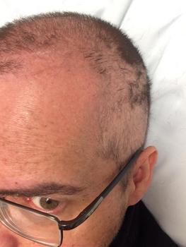 El hospital tiene un barbero / salón y no te afeitan la cabeza (por miedo a q te corten y si tienes las plaquetas bajas no cierra la herida), pero si me pasaron la #1.