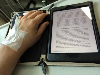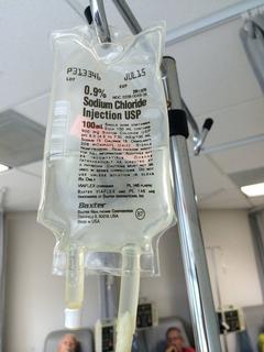 La rutina diaria por las próximas dos semanas: voy al hospital, me sacan muestras de sangre, determinan si me hace falta algo y me lo dan. Hoy fue un suero hidratante de 3 horas y dos pastillas de potasio. Los días se me hacen laaaaargos.