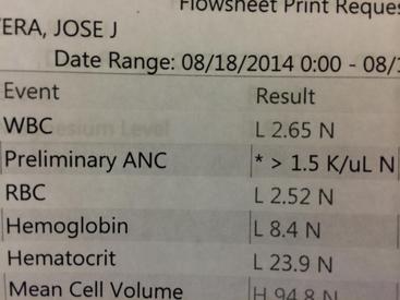· Red Blood Count: 3.94 [Normal: 4.70 – 6.10]
